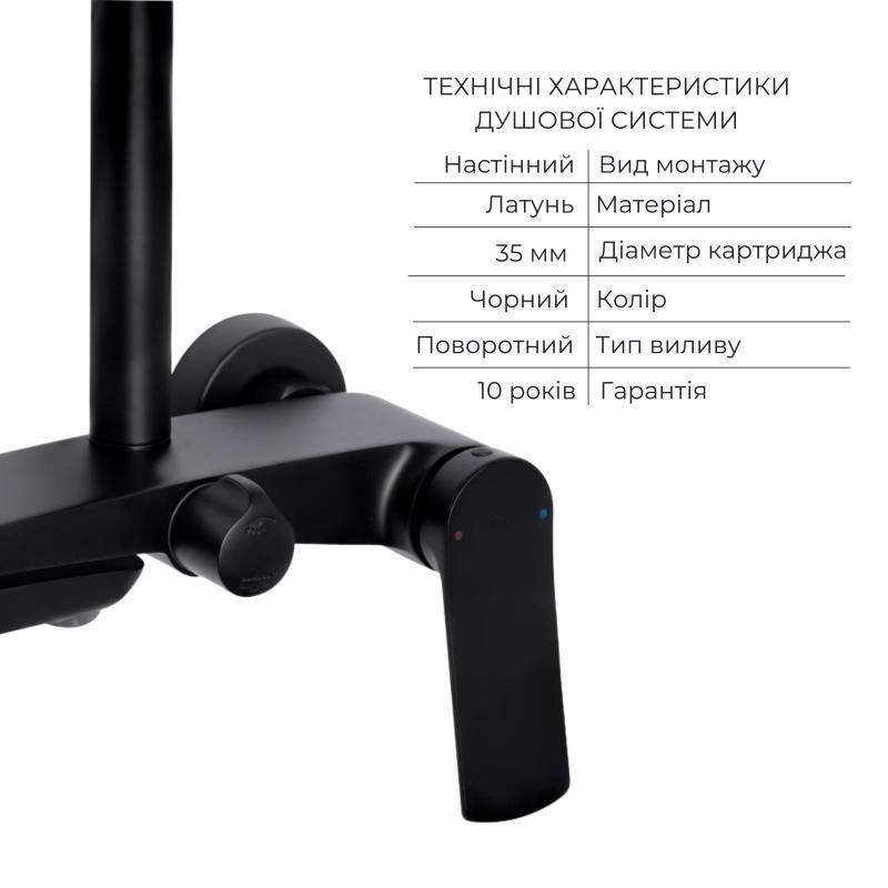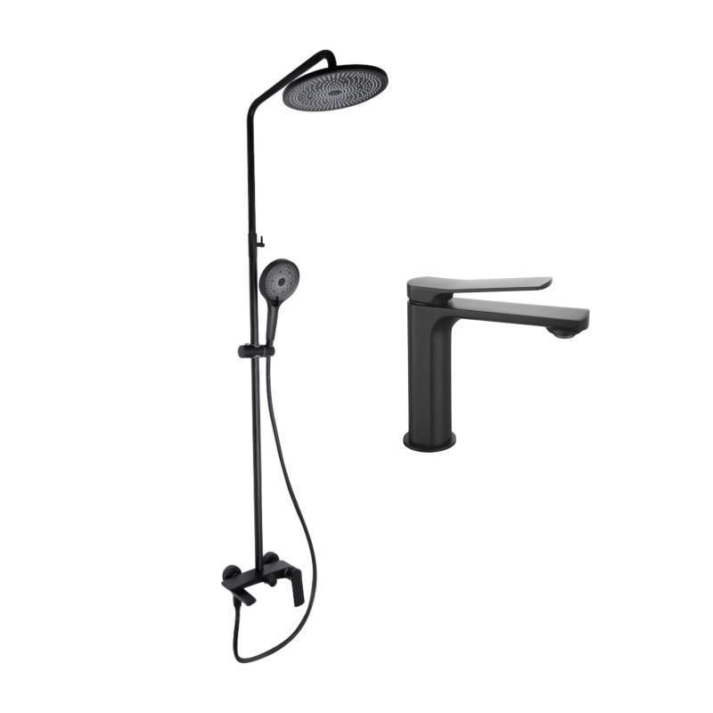 Комплект смесителей Qtap Slavonice: Душевая система QTSLA111BLM45911 + Смеситель для раковины QTSLA1042103B