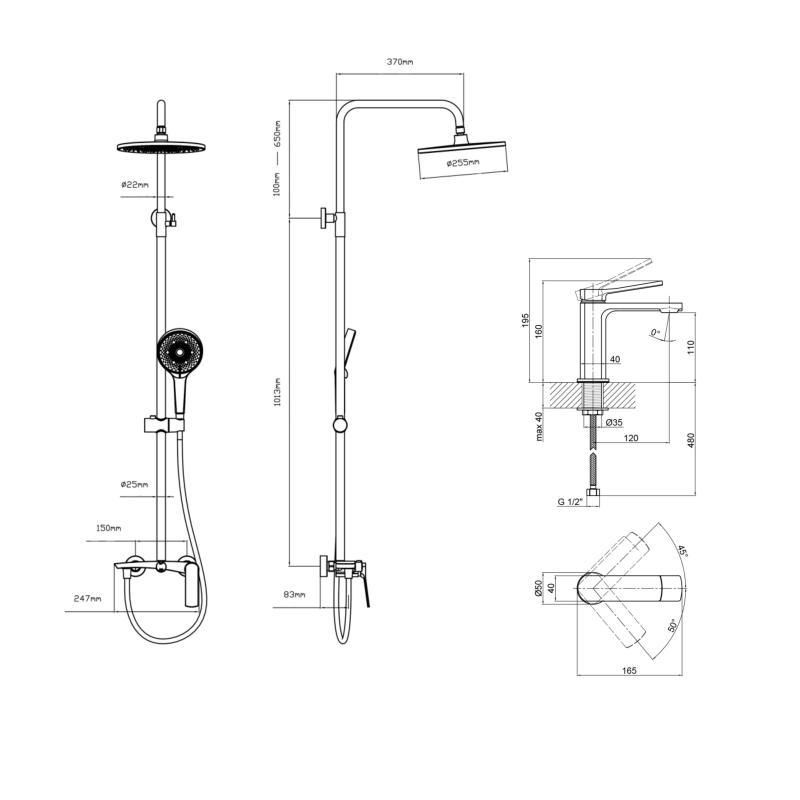 Комплект смесителей Qtap Slavonice: Душевая система QTSLA110BLM45914 + Смеситель для раковины QTSLA1042103B