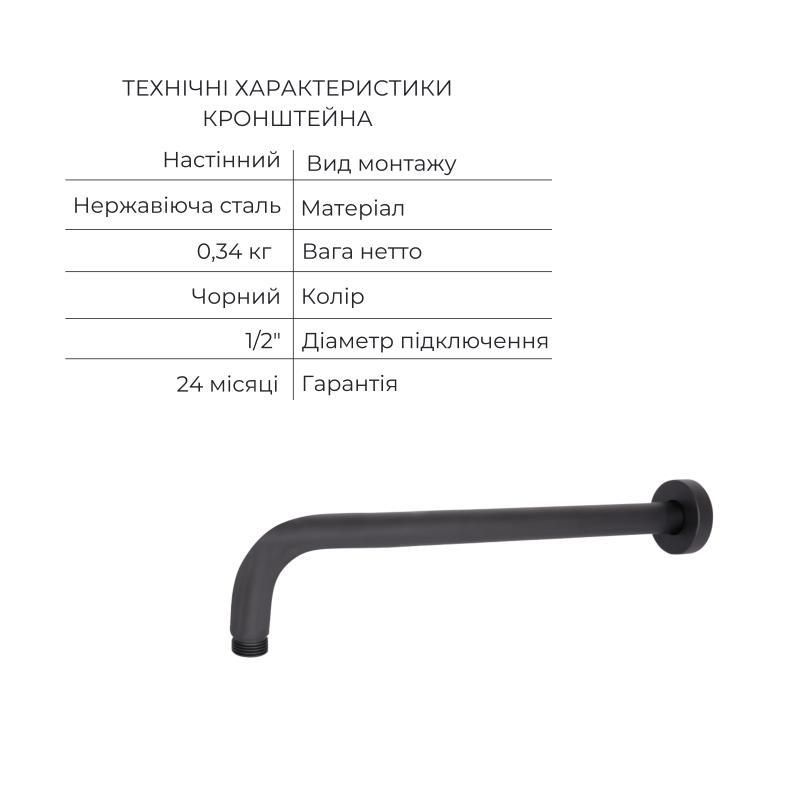 Комплект Qtap Stenava: душевой комплект с черным смесителем и аксессуарами, включая лейку, шланг и держатель. Матовая отделка придает интерьеру элегантный и современный вид.