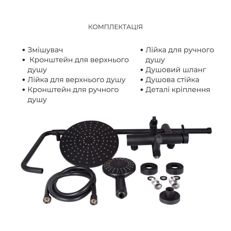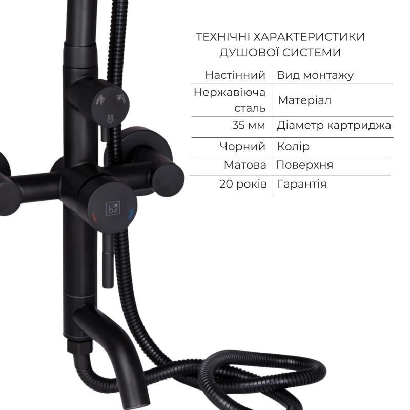 Комплект смесителей Lidz Aria Black: душевая система и смеситель для раковины в элегантном черном цвете. Отличается стильным дизайном, удобством в эксплуатации и долговечностью, подчеркивая современный интерьер ванной комнаты.