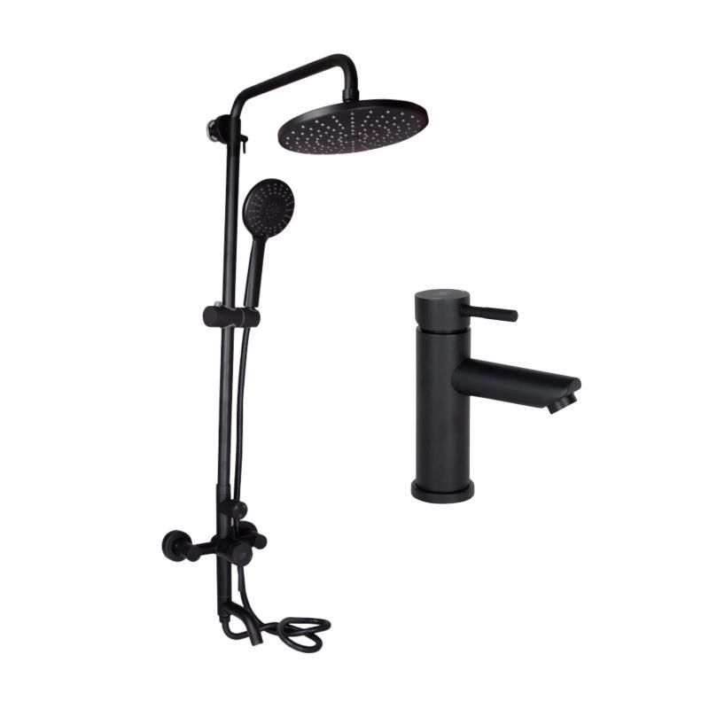 Комплект смесителей Lidz Aria Black: Душевая система LDARI1030BLA43373 + Смеситель для раковины