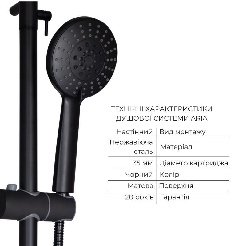 Комплект смесителей Lidz Aria Black: Душевая система LDARI1032BLA43371 + Смеситель для раковины