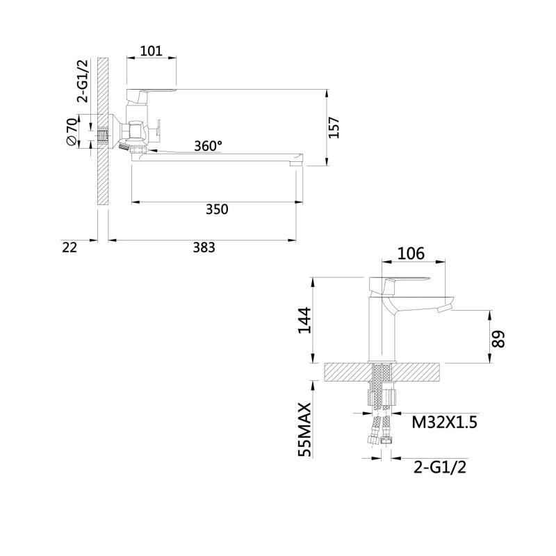 Набор смесителей для ванной 2 в 1 Mixxus SUS 006 + Mixxus SUS 001 A из нержавейки В наличии