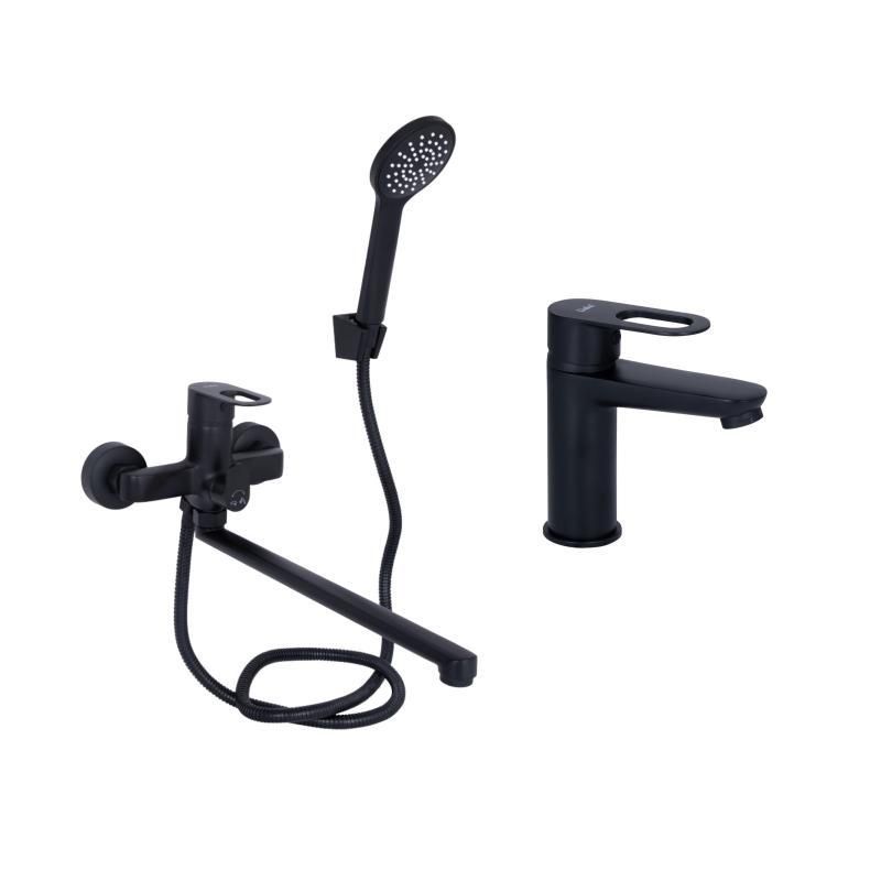 Комплект смесителей Lidz Latwa Black: сочетание смесителя для раковины и ванны в черном матовом цвете. Подходит для создания гармоничного и современного интерьера.