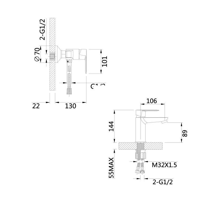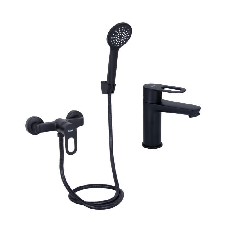 Комплект смесителей Lidz Latwa Black: Смеситель для раковины LDLAT001BLA45418 + Смеситель для душа