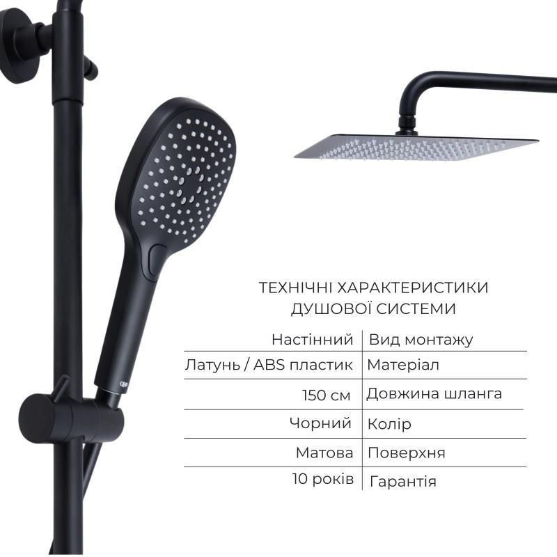 Комплект смесителей Qtap Sloup: Душевая система QTSL57T105VNKBB + Смеситель для раковины QTLIPNO1023101CB