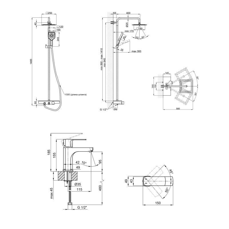 Вес нетто, кг8,25 - душевая система; 1,68 - смеситель