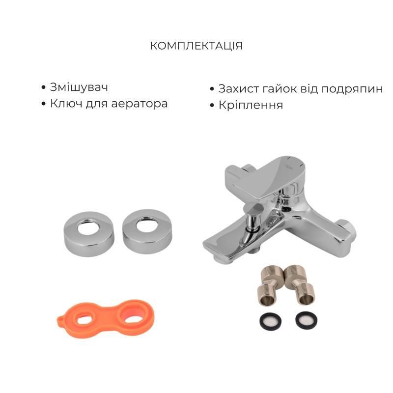 Комплект для ванной комнаты Qtap Nihonto Chrome: Смеситель QTNH3022101DC + Держатель QTCRMA030 + Шланг
