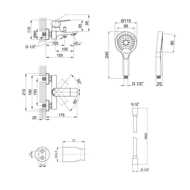 КомплектацияСмеситель (QTNH3022101DC), держатель (QTCRMA030), шланг (QTHADPVC160C), лейка (QTRUCA115O3KCW)