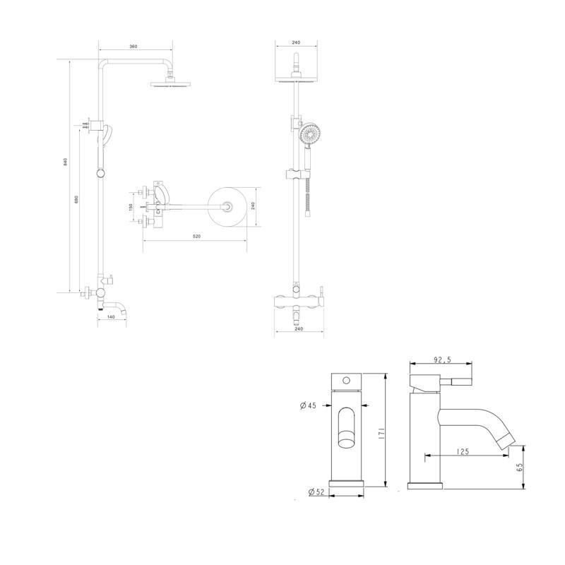 Комплект смесителей Lidz Aria Black: Душевая система LDARI1031BLA43370 + Смеситель для раковины