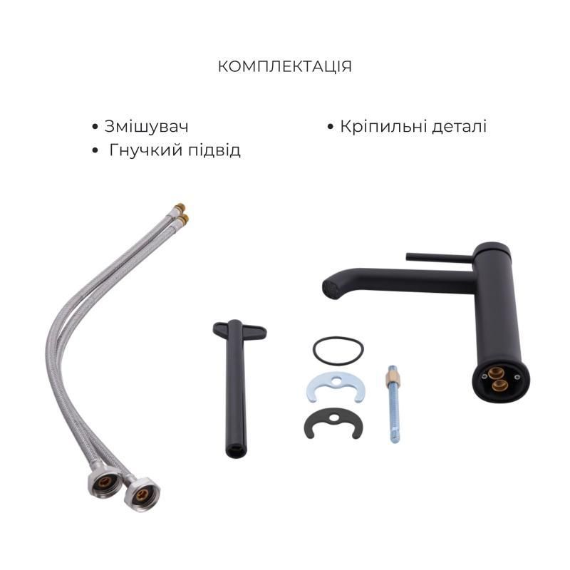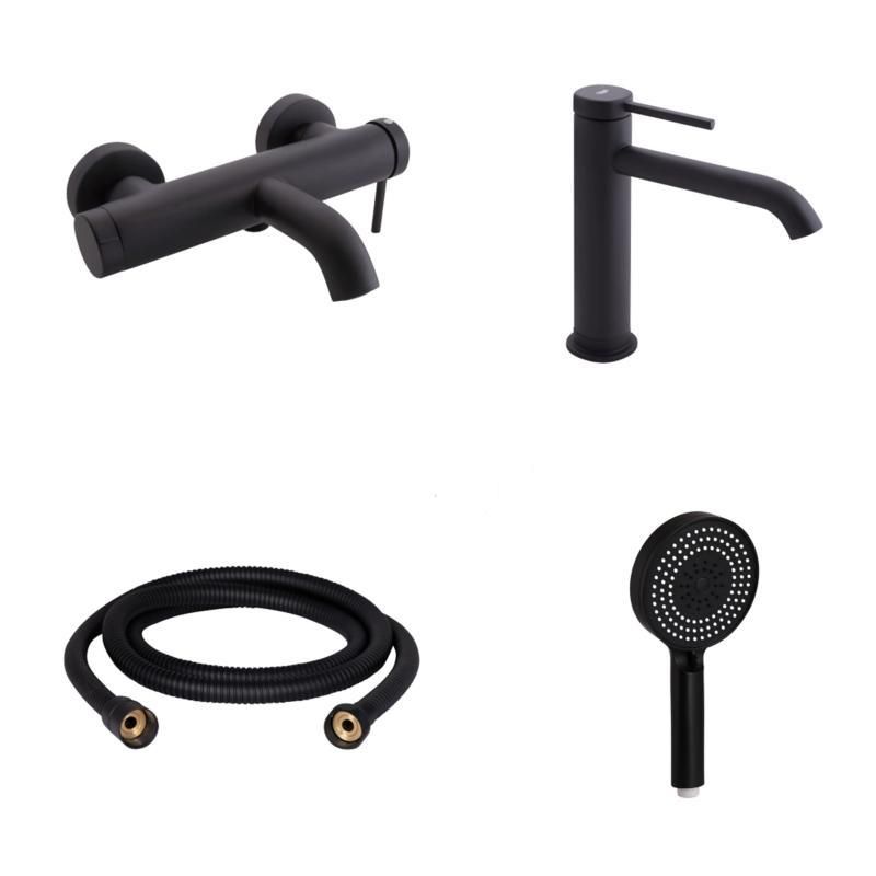 Комплект для ванной Qtap Robin Black: Смесители QTROB3060102B+QTROB1060M102B+Держатель QT829910842854OB+Шланг