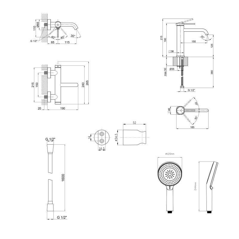 Вес нетто, кг2,15 - смеситель для ванны; 0,047 - держатель; 0,335 - шланг; 0,51 - лейка; 1,3 - смеситель для раковины