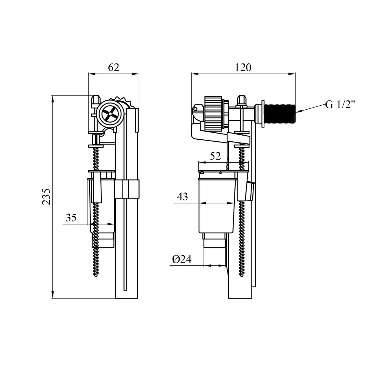 1. Совместимость: Подходит для бачков с боковым подключением и отверстием Ø23±0,3 мм.