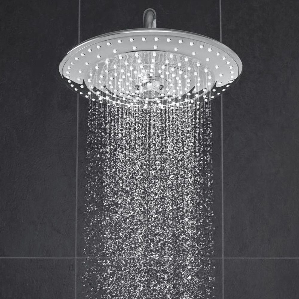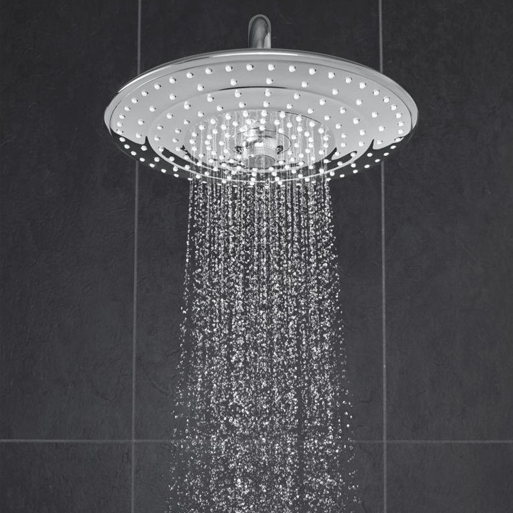 Роскошная и функциональная душевая система Grohe QuickFix Vitalio Joy System 260 27860001 с термостатом - идеальное решение для вашей ванной комнаты. Она объединяет в себе высокое качество, стильный дизайн и передовые технологии, обеспечивая непревзойденный комфорт и удовольствие во время каждого душа. Технология GROHE WaterSaving снижает потребление воды до 9,5 литров в минуту, не жертвуя при этом комфортом. Верхний душ с функцией Rain расслабляет и освежает, обеспечивая приятный поток воды, а ручной душ Vitalio Joy 110 мм Massage с тремя режимами струи - Rain, SmartRain и Massage - позволяет настроить поток воды согласно вашему настроению. Технология GROHE TurboStat обеспечивает постоянную температуру воды даже при колебаниях давления, а GROHE DreamSpray обеспечивает равномерный поток воды из каждого форсунка. Благодаря GROHE SafeStop, температура воды ограничивается до безопасного уровня 38 °C, что делает эту систему идеальным выбором для всей семьи. Металлическая рукоятка и металлическая накладка GROHE QuickFix обеспечивают прочность и долговечность, а система SpeedClean легко очищает форсунки от известковых отложений. Яркая хромированная поверхность GROHE Long-Life Shine сохраняет свой блеск на протяжении многих лет, придавая вашей ванной элегантный вид.