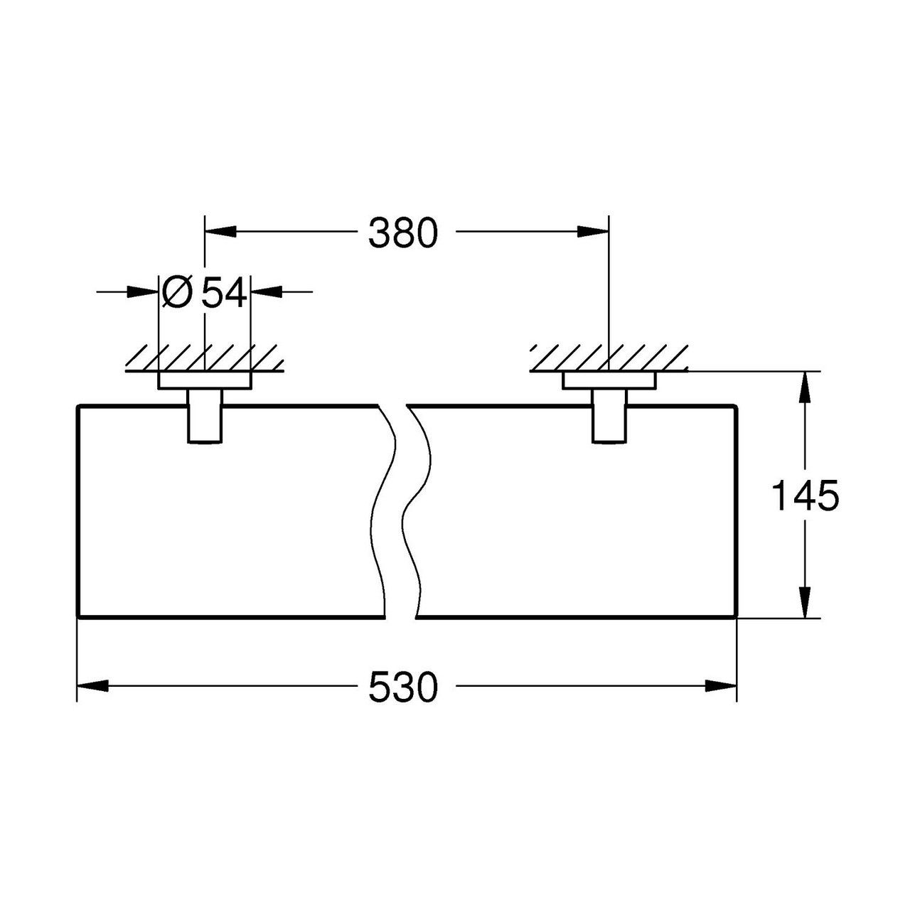 Изготовленная из высококачественных материалов, полка имеет длину 530 мм, что обеспечивает достаточно места для размещения всех необходимых аксессуаров. Черные матовые кронштейны с покрытием GROHE Long-Life Shine добавляют долговечности, делая полку не только красивой, но и прочной. Благодаря скрытому креплению полка выглядит особенно аккуратно и профессионально.