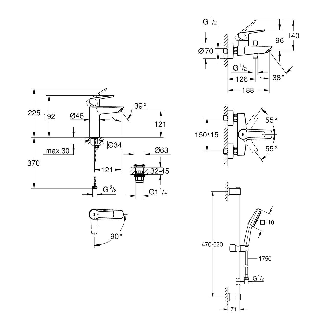 Технологии: Регулируемый ограничитель расхода воды, ограничитель температуры, нажимной донный клапан в комплекте Push-Open 1 1/4" дюйма, система установки GROHE FastFixation, керамический картридж GROHE SilkMove ES 28 мм с функцией энергосбережения, GROHE Long-Life Shine хромированная поверхность, аэратор GROHE WaterSaving 5,7 л/мин, GROHE Zero изолированные внутренние каналы подачи воды, инструмент для установки 3-в-1, минимальное рекомендуемое давление: 0,5–5,0 бар, гибкие соединительные шланги 3/8 дюйма.