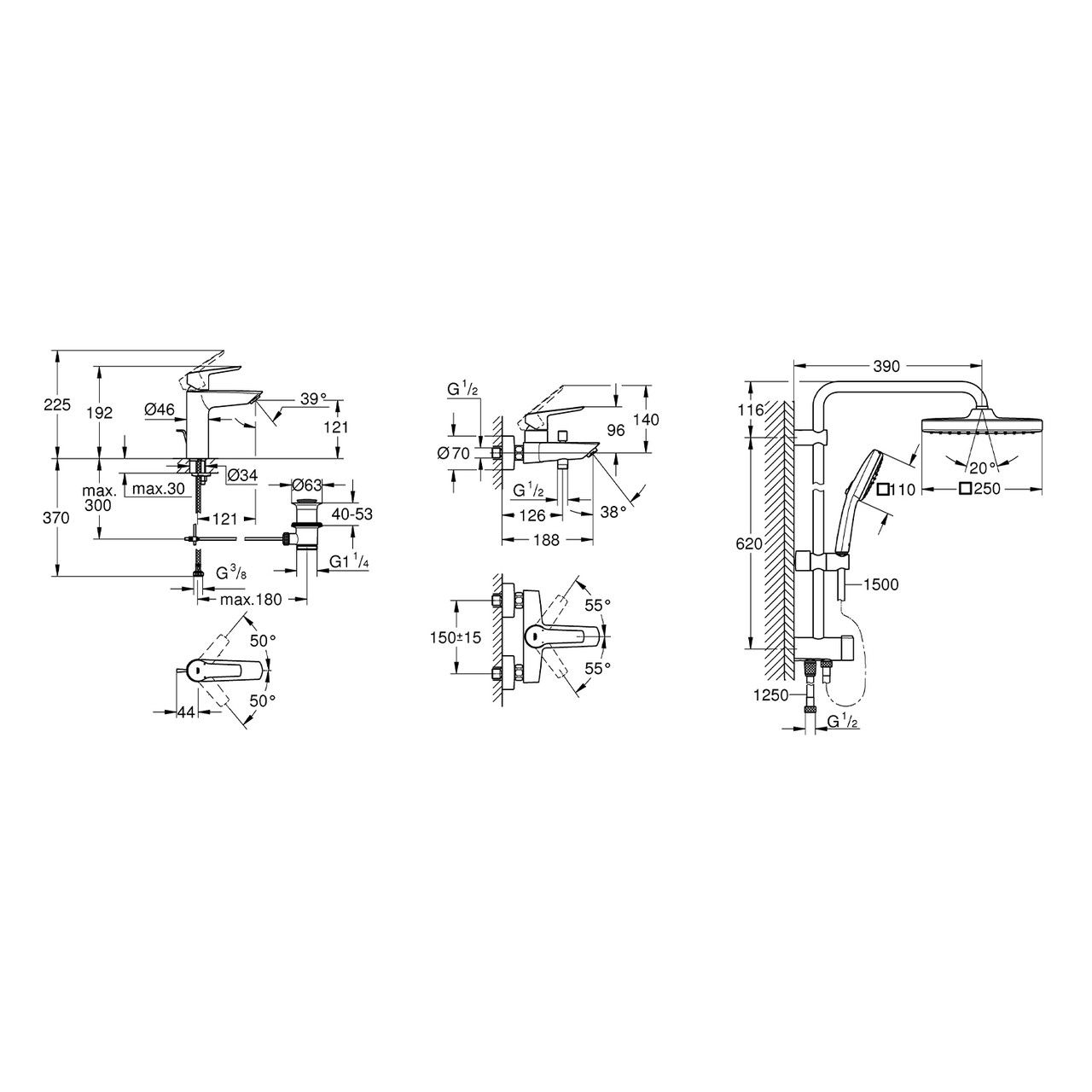 Набор смесителей 3 в 1 для ванной комнаты Grohe QuickFix Start M-Size UA202305RM представляет собой удобное и эстетичное решение для обновления вашей ванной комнаты.