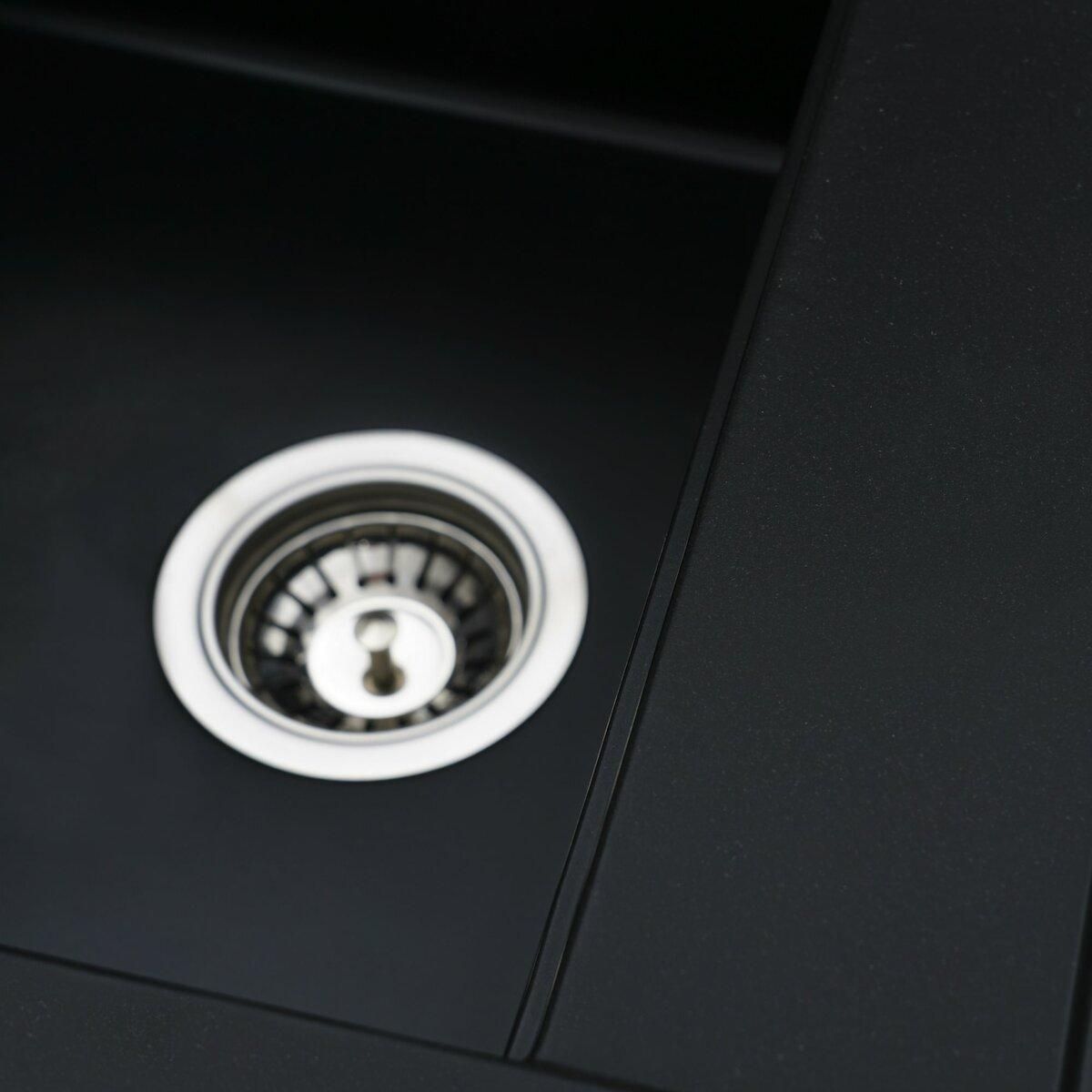 Мойка имеет матовую фактуру и приятный для глаза цвет - черный, что позволяет ей легко вписаться в интерьер кухни.