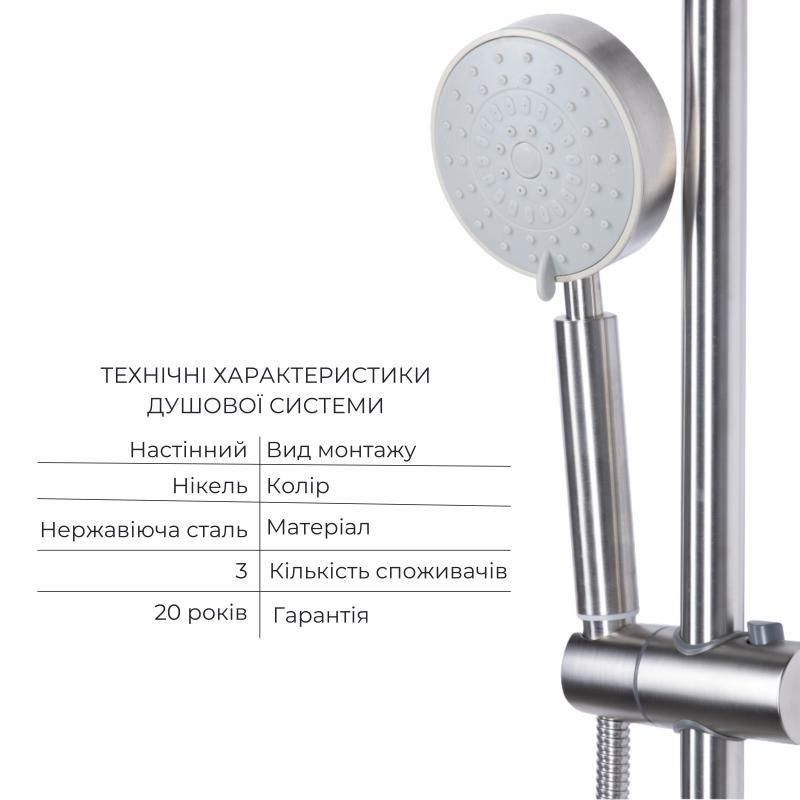 Комплект для душевой комнаты Lidz Aria 1033 Душевая система на 3 потребителя (k35) Nickel +Lidz Aria 0011F
