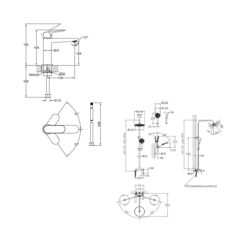 Вес брутто, кг1,166 - смеситель для раковины; 5,16 - душевая система