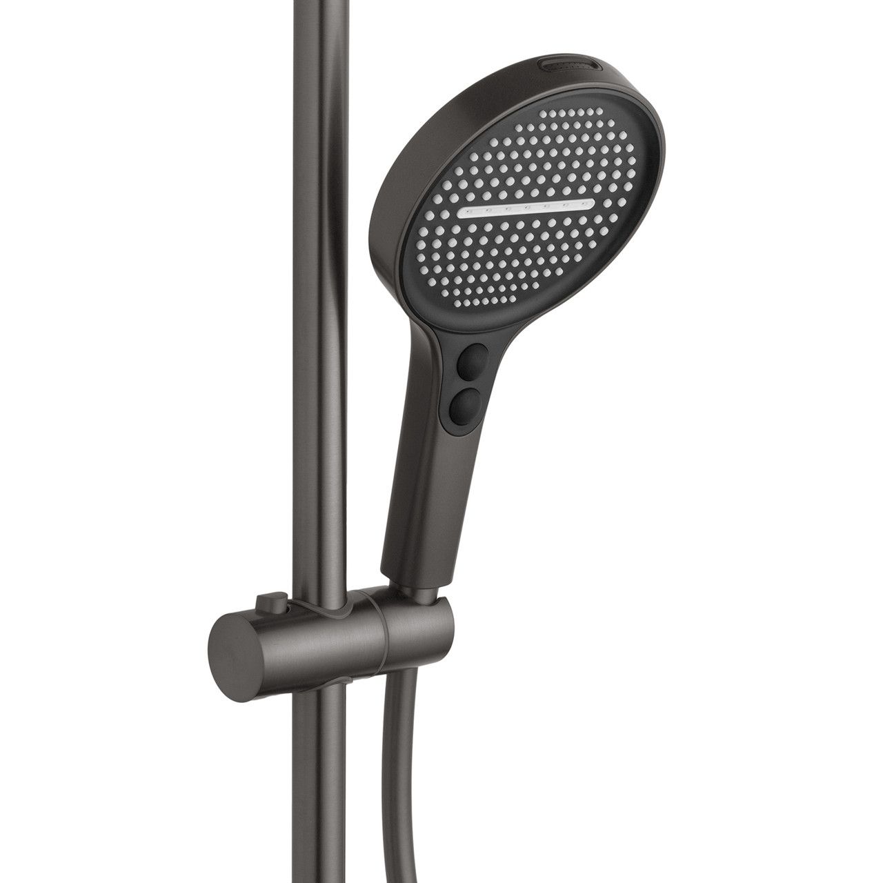 Душевая система Kroner KRP Makon - GRP0637 – это современное решение для тех, кто ценит комфорт, качество и стиль в ванной комнате. Она сочетает продуманную эргономику, функциональность и элегантный дизайн в графитовом цвете, который эффектно смотрится и гармонично вписывается в любой интерьер.