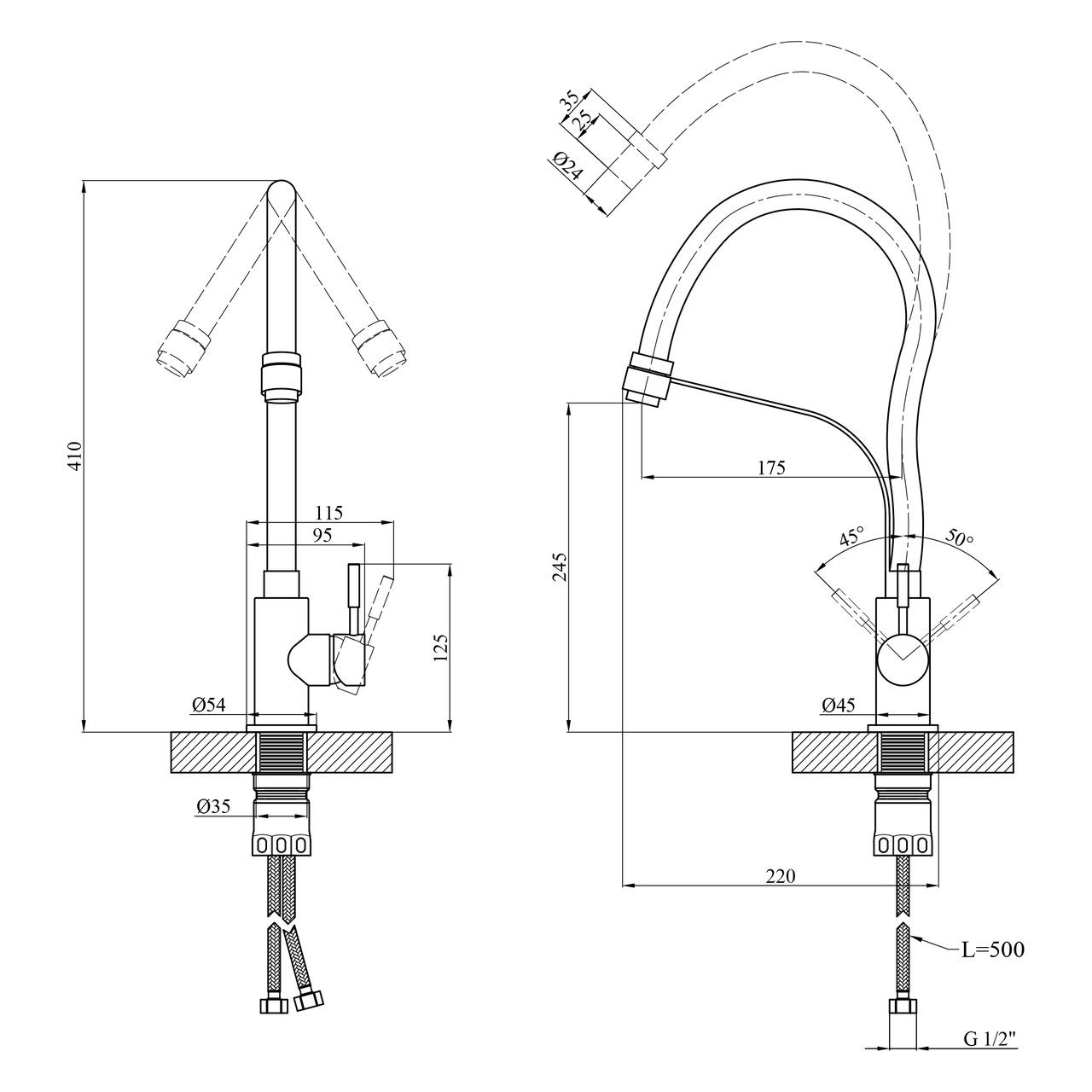 Смесители для кухни гибким изливом Kroner