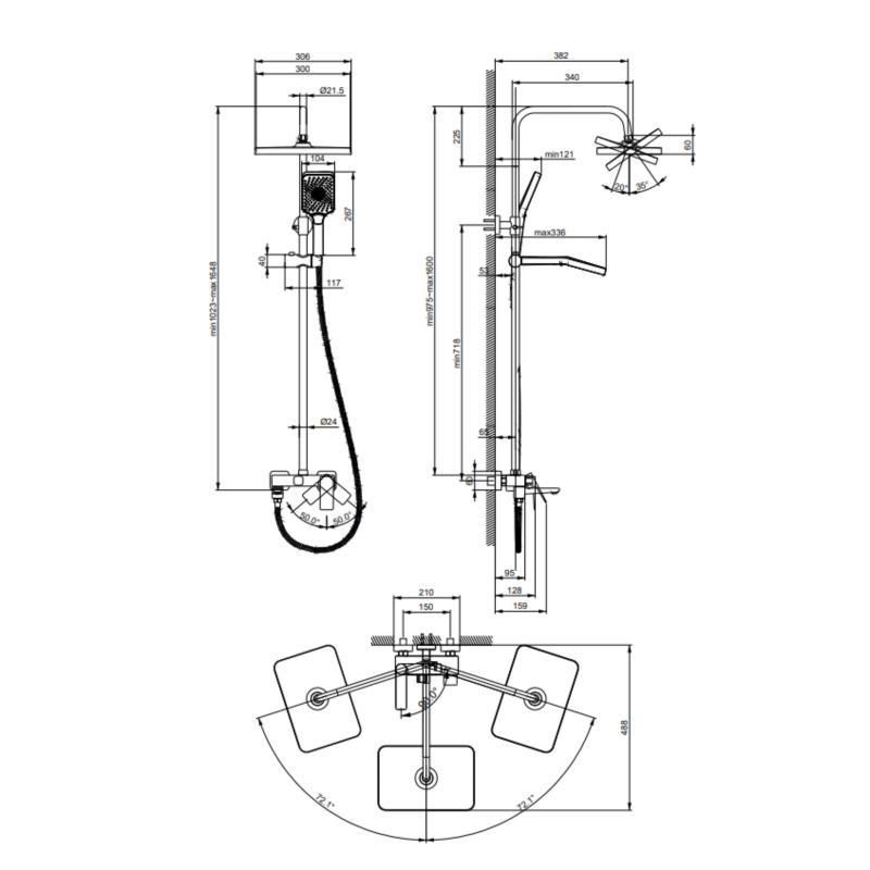 Длина кронштейна для верхнего душа, мм340