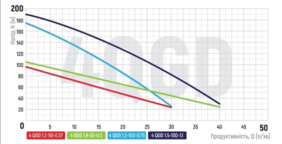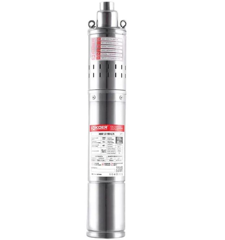 Насос шнековый погружной для скважин Чехия 4QGD 1.2-100-0.75 H=175м, Q=1,8м3, P=750 Вт, кабель 15м, 1"