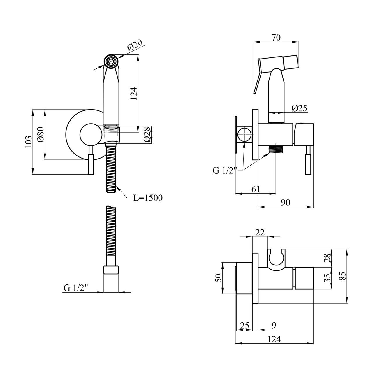 Набор 3 в 1 душевая система Kroner Armada-C064K + смеситель Hagen-C010 + смеситель Bidet-C082 В наличии