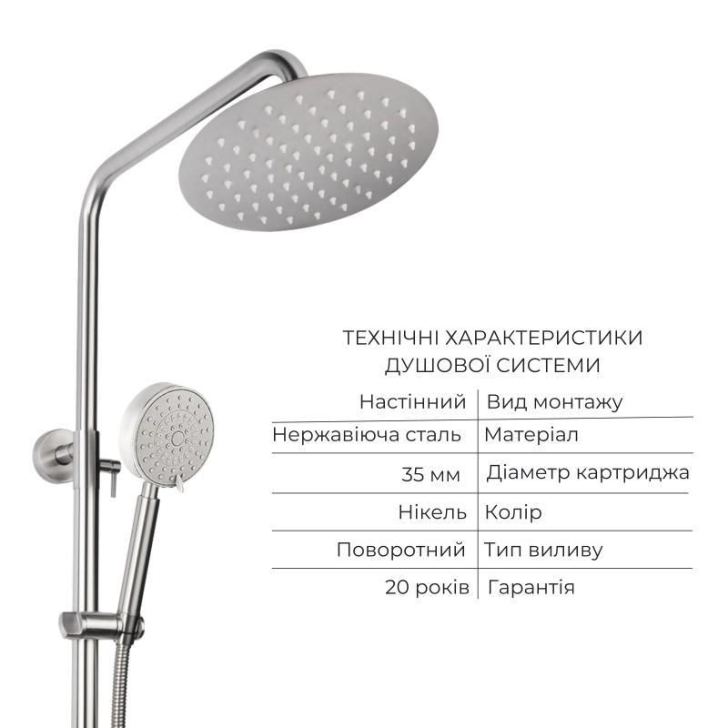 Акционный набор: Lidz Aria 0011F Смеситель для раковины (k35) Nickel + Lidz Aria 1031 Душевая система на 3 потребителя (с изливом)