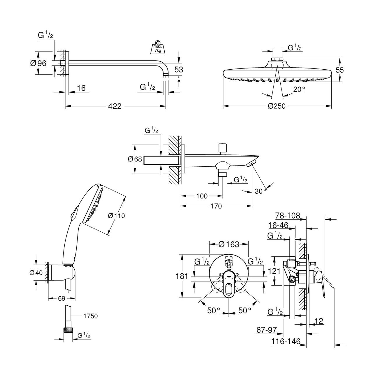 Комплект Grohe Vitalio Start 250 из Bauloop UA290810R3 – это полноценное решение для создания комфортной душевой зоны в ванной комнате. Все компоненты выполнены в едином современном стиле GROHE, обладают хромированным покрытием LongLife и отличаются высоким качеством и долговечностью.
