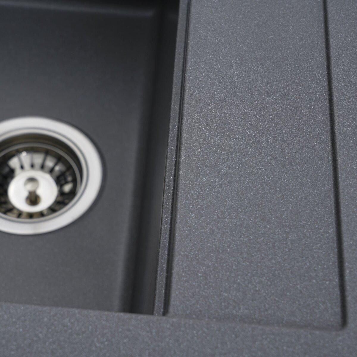 Мойка имеет матовую фактуру и приятный для глаза цвет - серый муссон, что позволяет ей легко вписаться в интерьер кухни.