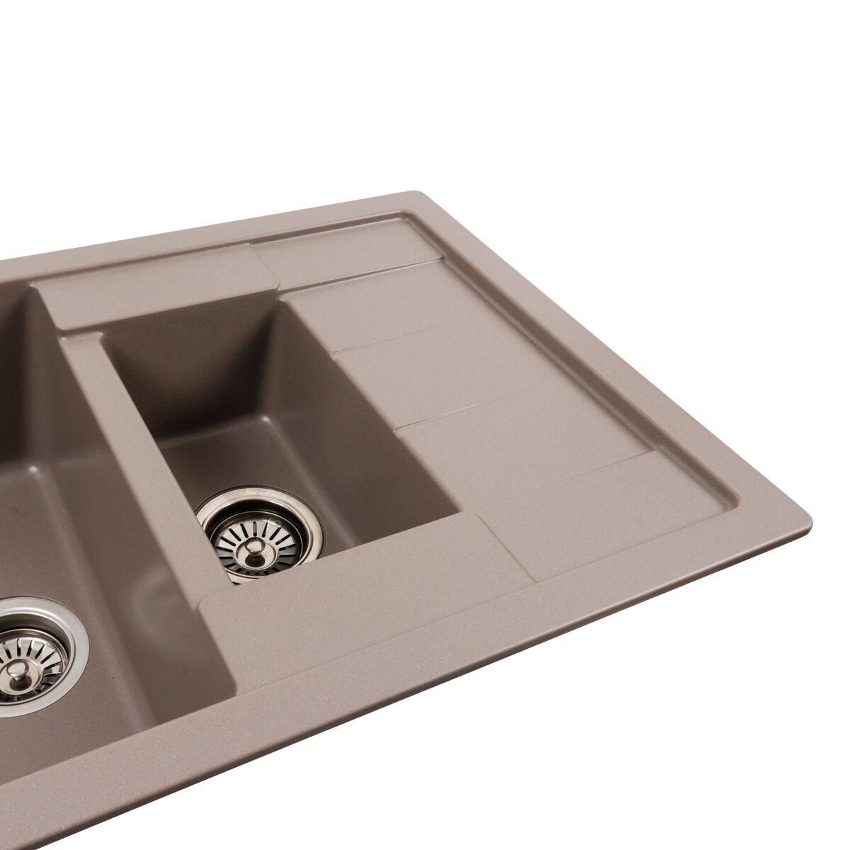 Мойка имеет матовую фактуру и приятный для глаза цвет – дюна, что позволяет ей легко вписаться в интерьер кухни.