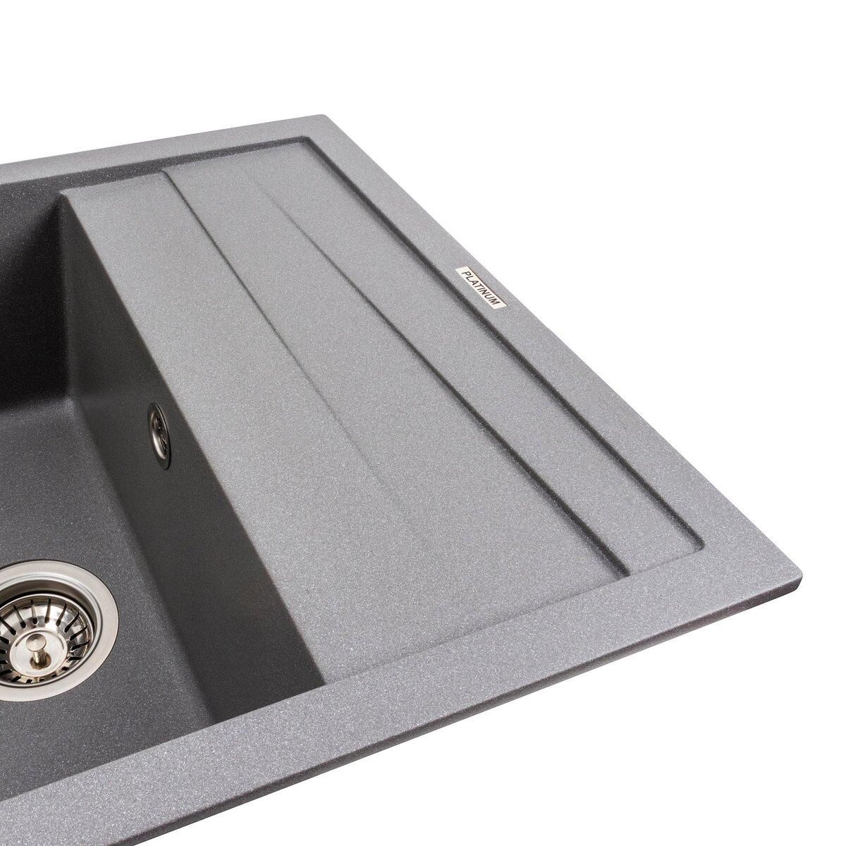 Гранитная мойка для кухни 7050 CASCADA цвета Серый муссон украинского бренда Platinum – это стильная, врезная, прямоугольная мойка, которая своим видом прекрасно дополнит дизайн вашей кухни. Мойка на 80% состоит из кварца и на 20% из очень жесткой акриловой смолы, благодаря чему неприхотлива в уходе, а также имеет большой запас прочности.