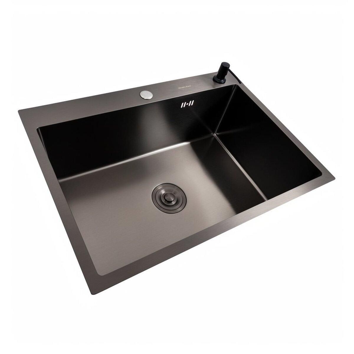 Кухонная мойка 70*50 Мойка PVD черная VALESO Handmade (сифон круглый, 3,0/0,8) – это отличное стильное решение для кухни средних размеров. Лаконичный дизайн прямоугольной формы хорошо подходит разным интерьерам кухни.