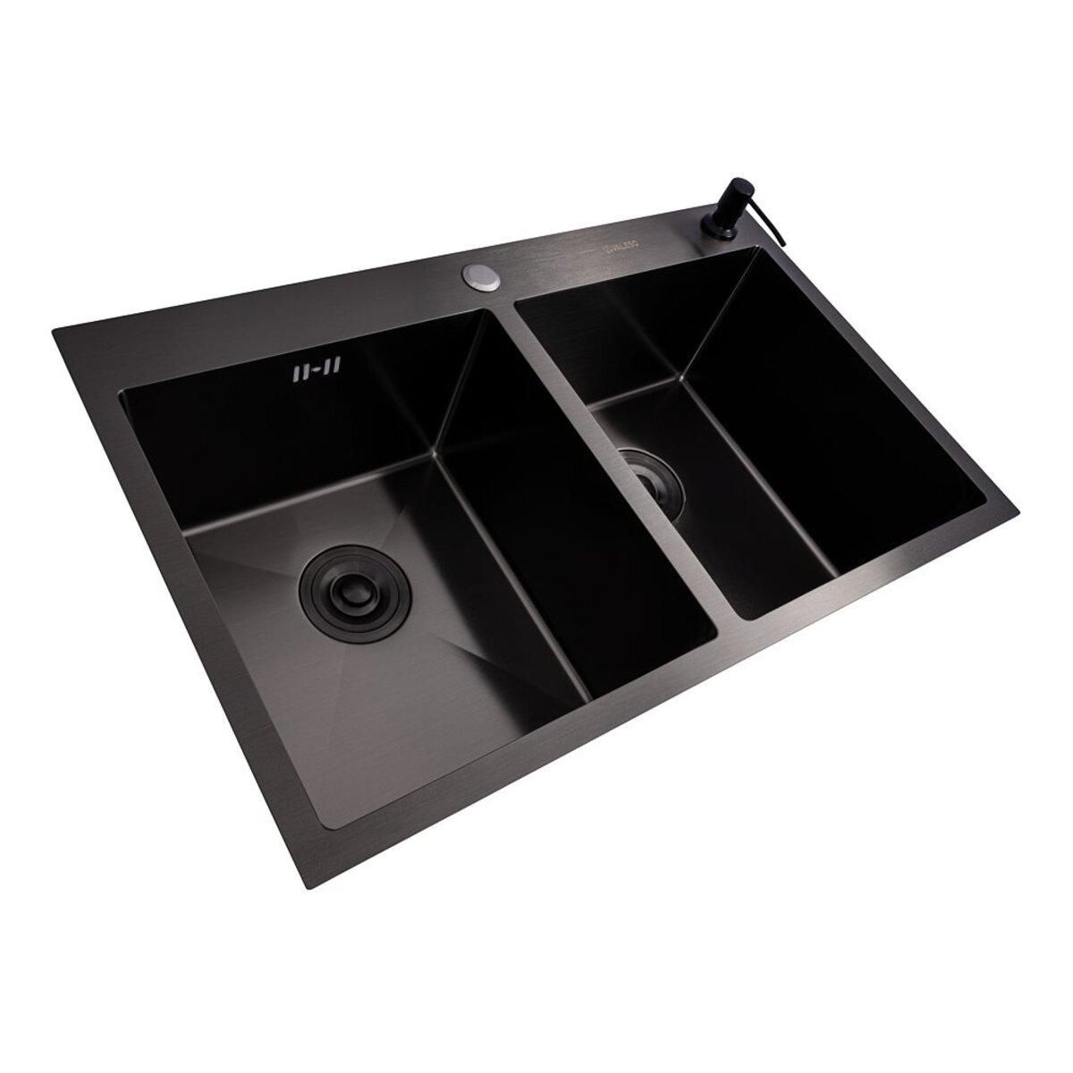 Черная кухонная мойка PVD VALESO Handmade 78*48, на две чаши (3.0/0.8)