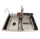 Интегрированный режим "Водопад": Отдельный широкий излив обеспечивает нежный и равномерный поток воды, идеальный для быстрой и удобной мойки фруктов, овощей или разморозки продуктов.