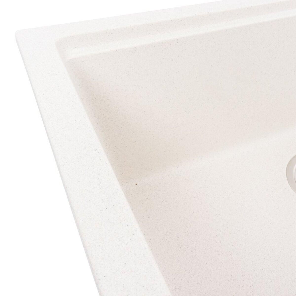 Гранитная мойка для кухни 7545 NIKA Белая в точку украинского бренда VALESO – это стильная, врезная, прямоугольная мойка, которая своим видом прекрасно дополнит дизайн вашей кухни. Мойка на 80% состоит из кварца и на 20% из очень жесткой акриловой смолы, благодаря чему неприхотлива в уходе, а также имеет большой запас прочности.