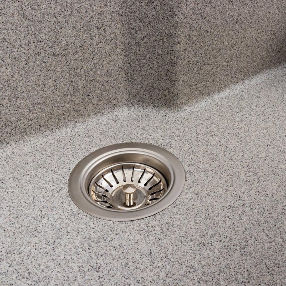 Мойка имеет матовую фактуру и приятный для глаза цвет – серый, что позволяет ей легко вписаться в интерьер кухни.