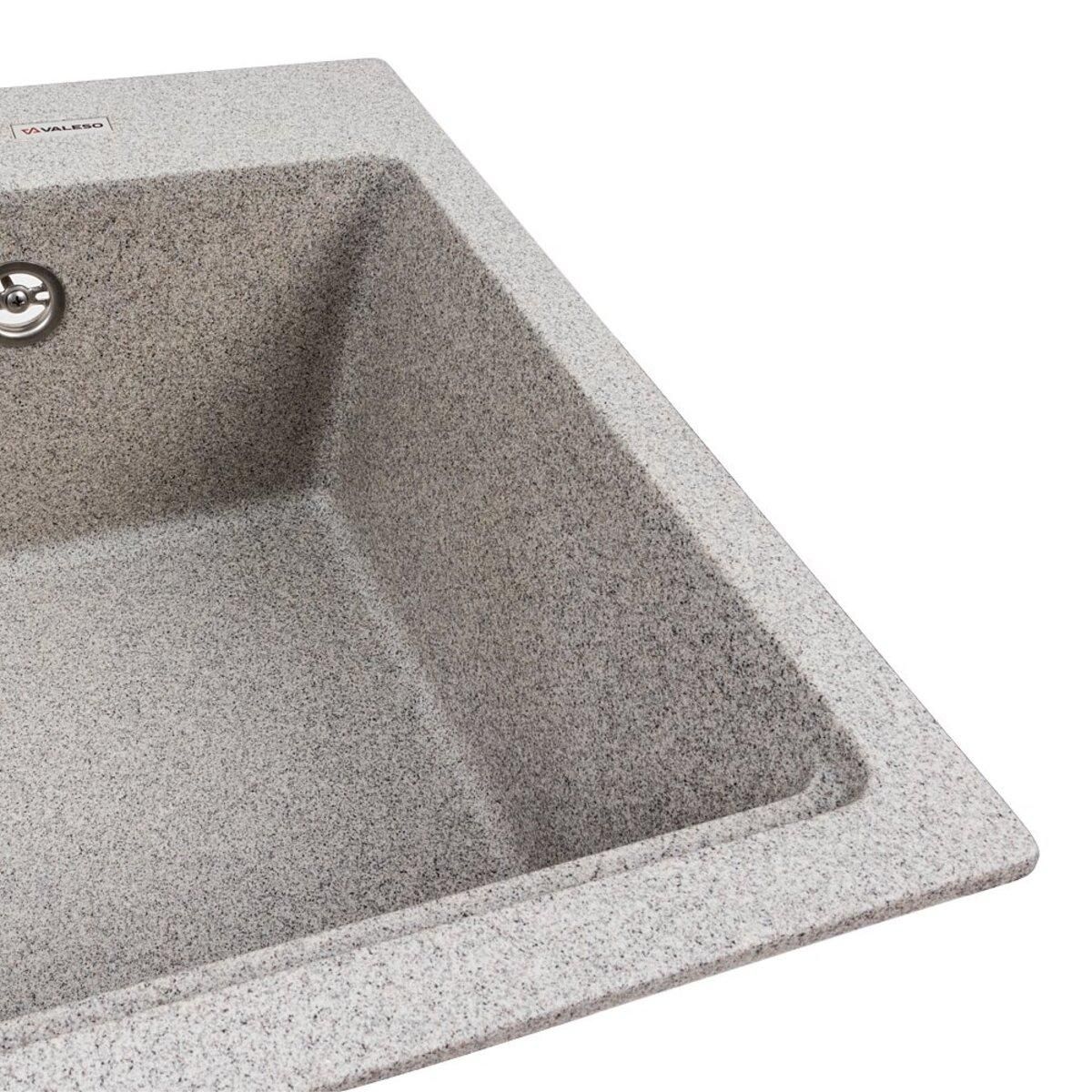 Гранитная мойка для кухни 7545 NIKA Серая украинская марка VALESO - это стильная, врезная, прямоугольная мойка, которая своим видом прекрасно дополнит дизайн вашей кухни. Мойка на 80% состоит из кварца и на 20% из очень жесткой акриловой смолы, благодаря чему неприхотлива в уходе, а также имеет большой запас прочности.