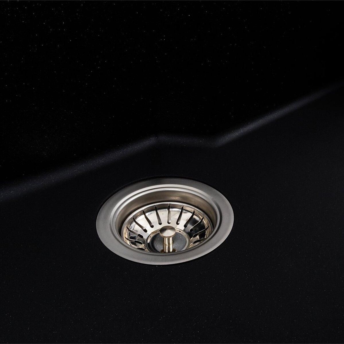 Мойка имеет матовую фактуру и приятный для глаза цвет – черный металлик, позволяющий ей легко вписаться в интерьер кухни.