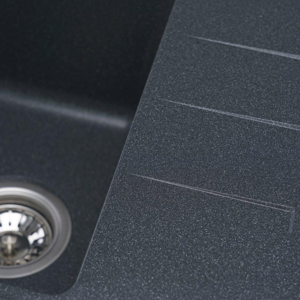 Мойка имеет матовую фактуру и приятный для глаза цвет - антрацит, что позволяет ей легко вписаться в интерьер кухни.