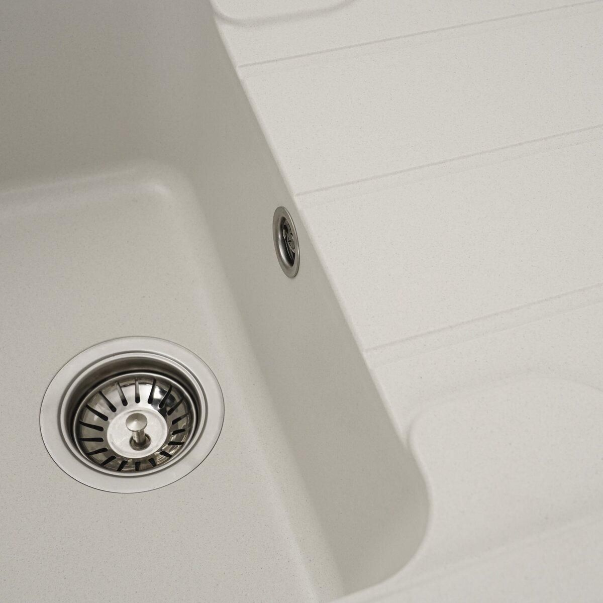 Мойка имеет матовую фактуру и приятный для глаза цвет - белоснежный, что позволяет ей легко вписаться в интерьер кухни.