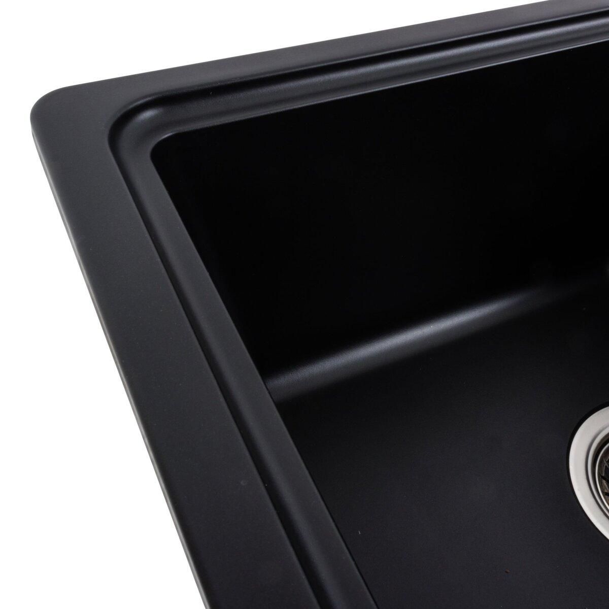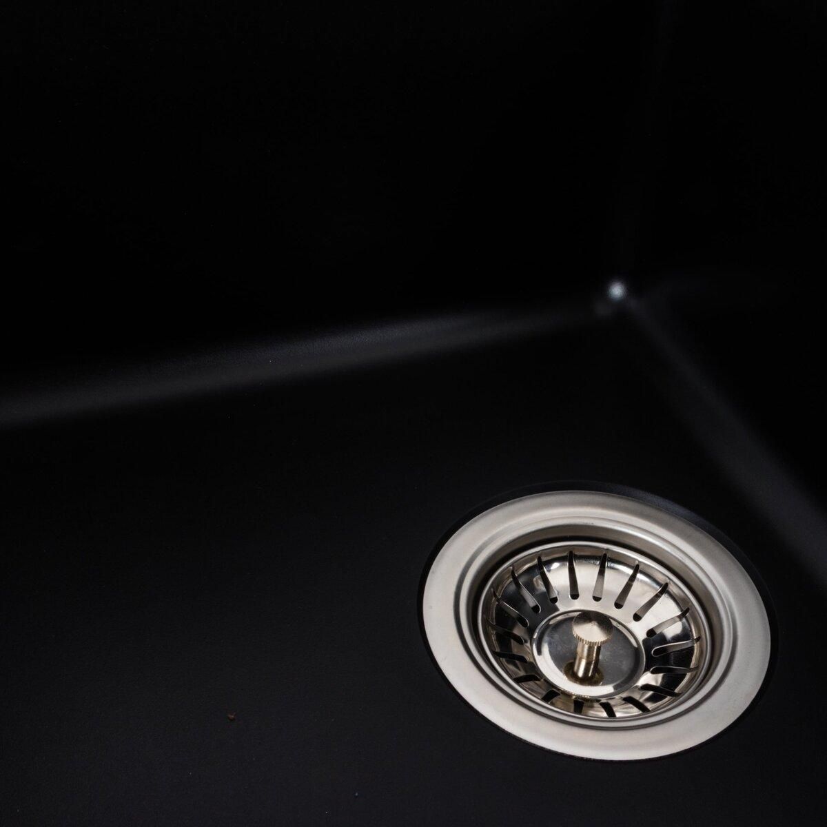 Мойка имеет матовую фактуру и приятный для глаза цвет - черный, что позволяет ей легко вписаться в интерьер кухни.