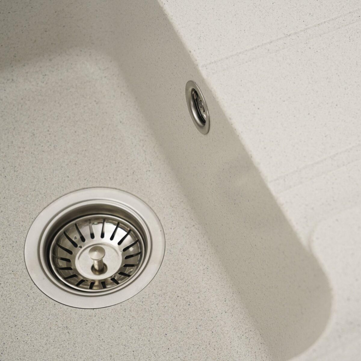 Мойка имеет матовую фактуру и приятный для глаза цвет - белый (в черную точку), что позволяет ей легко вписаться в интерьер кухни.