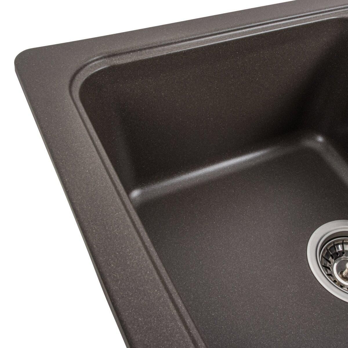 Мойка имеет матовую фактуру и приятный для глаза цвет - темная скала, что позволяет ей легко вписаться в интерьер кухни.