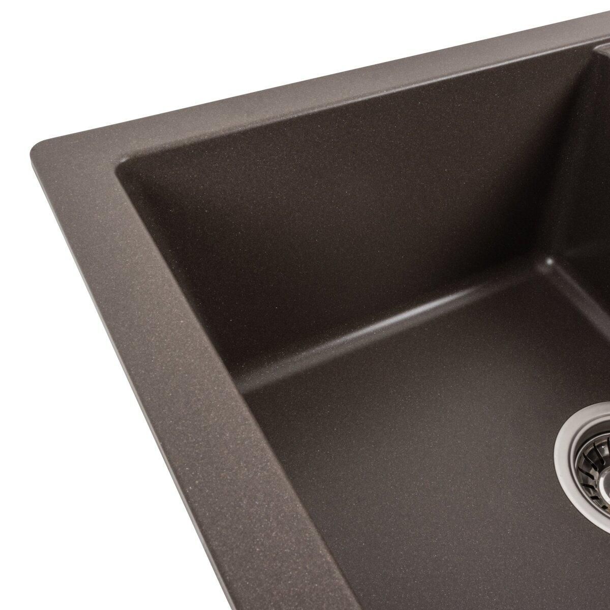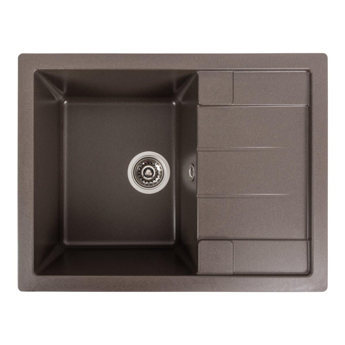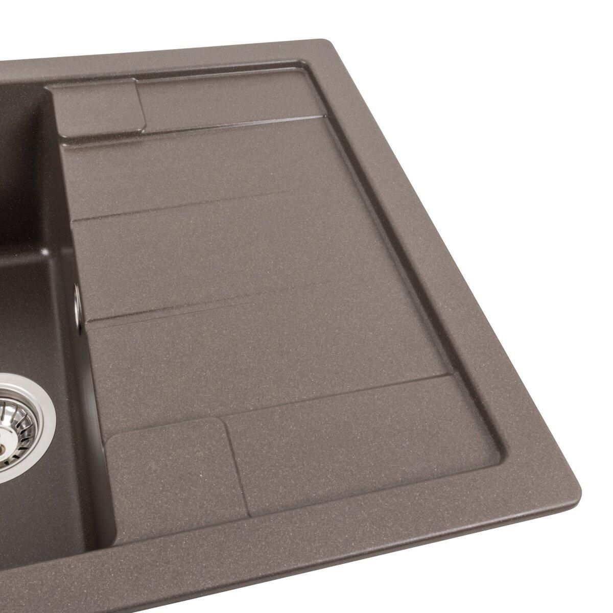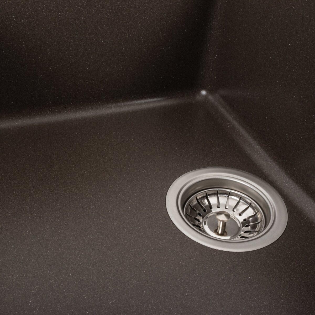 Мойка имеет матовую фактуру и приятный для глаза цвет - темная скала, что позволяет ей легко вписаться в интерьер кухни.