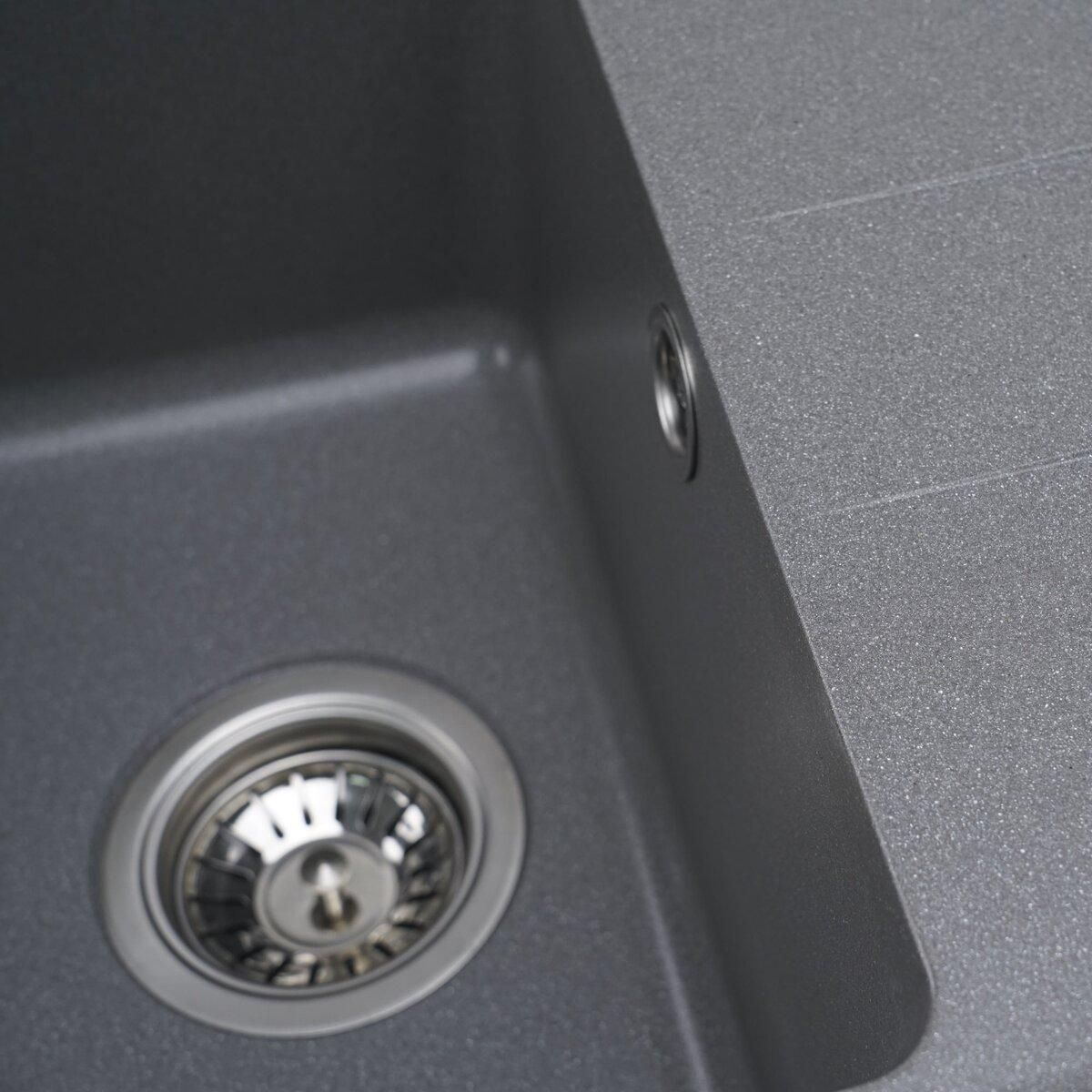 Мойка имеет матовую фактуру и приятный для глаза цвет - серый муссон, что позволяет ей легко вписаться в интерьер кухни.