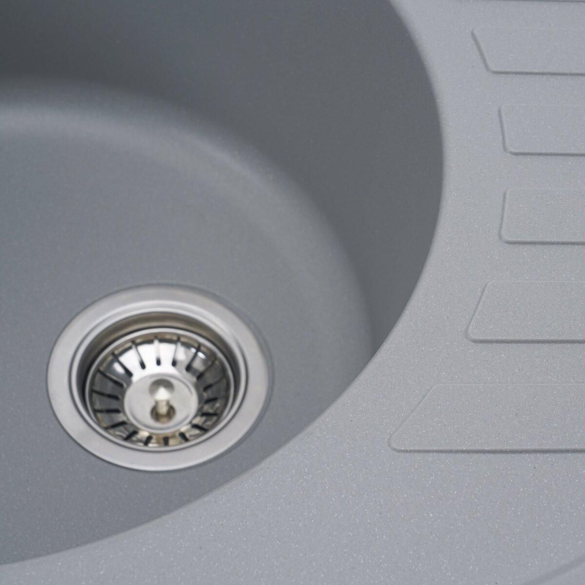 Мойка имеет матовую фактуру и приятный для глаза цвет - серый металлик, что позволяет ей легко вписаться в интерьер кухни.