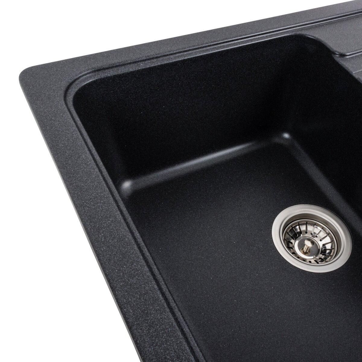 Мойка имеет матовую фактуру и приятный для глаза цвет - карбон, что позволяет ей легко вписаться в интерьер кухни.